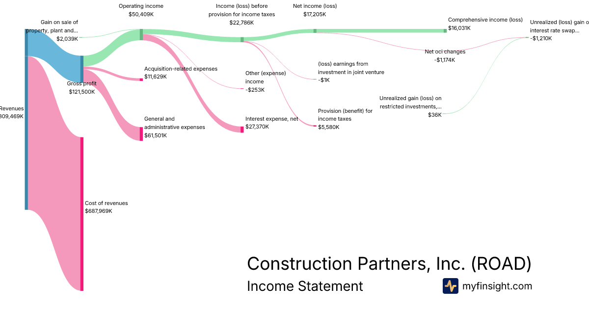 For the quarter ending 2025-12-31, ROAD made $809,469K in revenue. $16,031K in net income. Net profit margin of 1.98%.
