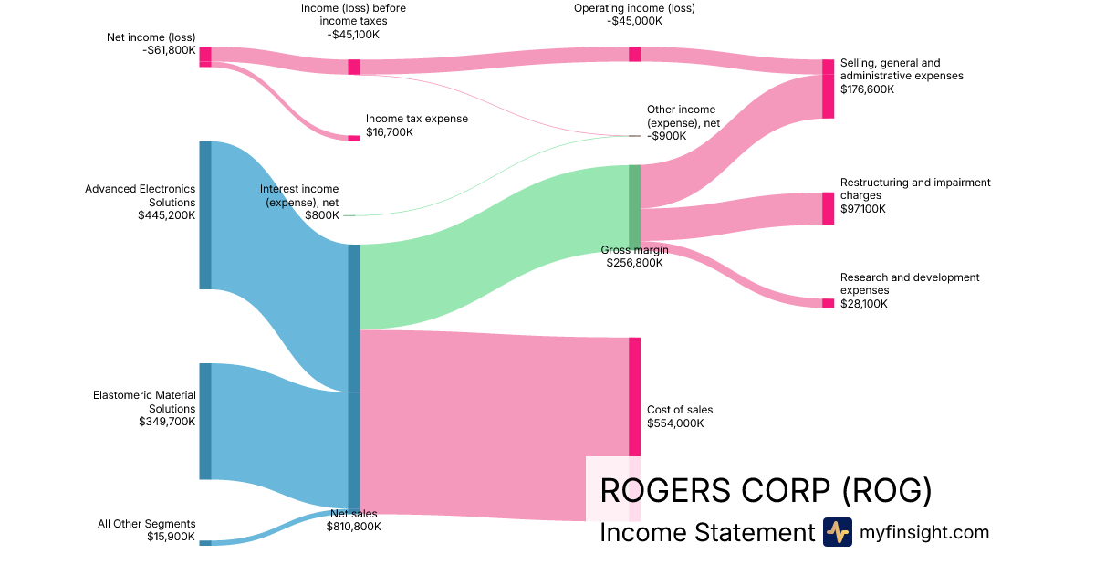 For the year ending 2025-12-31, ROG made $810,800K in revenue. -$61,800K in net income. Net profit margin of -7.62%.