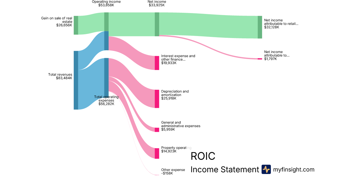 For the quarter ending 2024-09-30, ROIC made $83,484K in revenue. $32,128K in net income. Net profit margin of 38.48%.