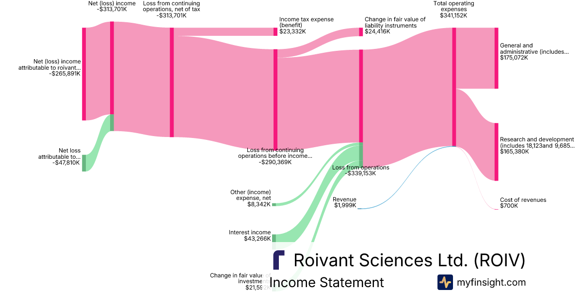 For the quarter ending 2025-12-31, ROIV made $1,999K in revenue. -$265,891K in net income. Net profit margin of -13301.20%.