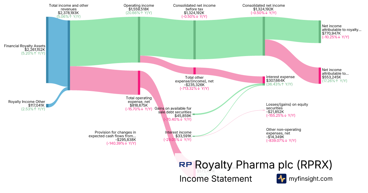 For the year ending 2025-12-31, RPRX made $2,378,193K in revenue. $770,947K in net income. Net profit margin of 32.42%.