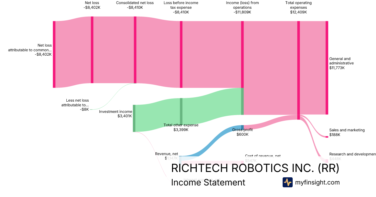 For the quarter ending 2025-12-31, RR made $1,147K in revenue. -$8,402K in net income. Net profit margin of -732.52%.