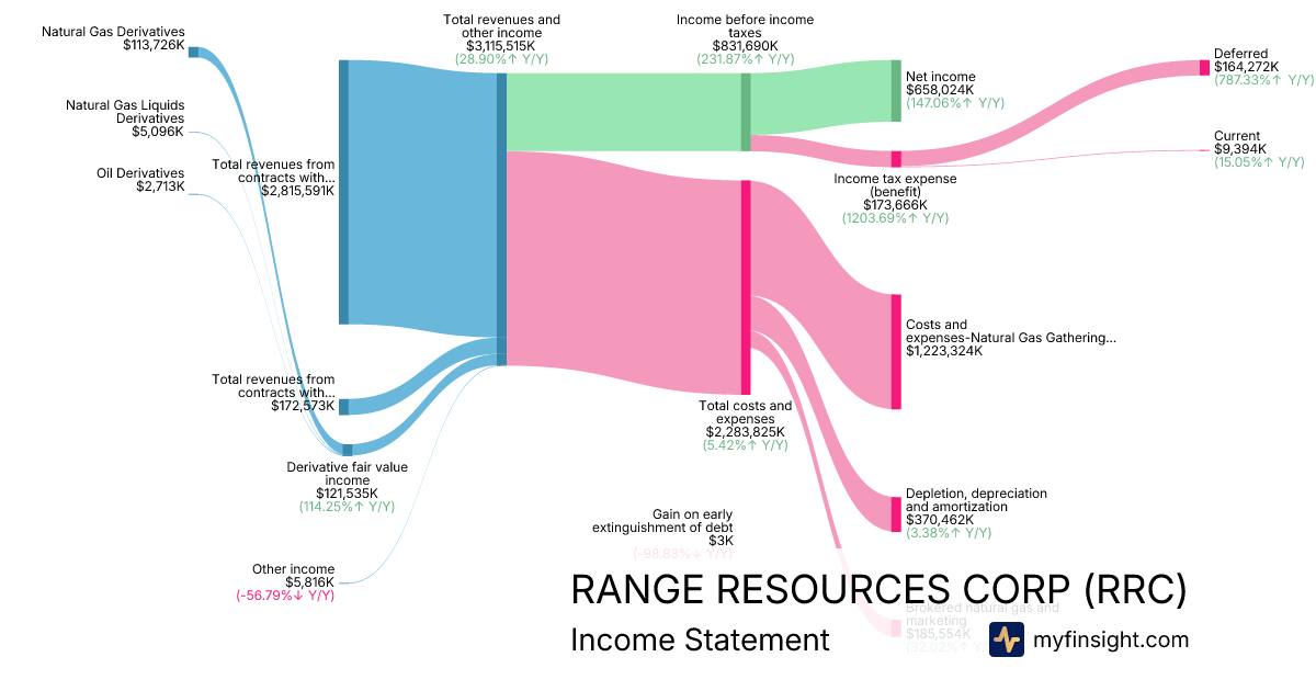 For the year ending 2025-12-31, RRC made $3,115,515K in revenue. $658,024K in net income. Net profit margin of 21.12%.