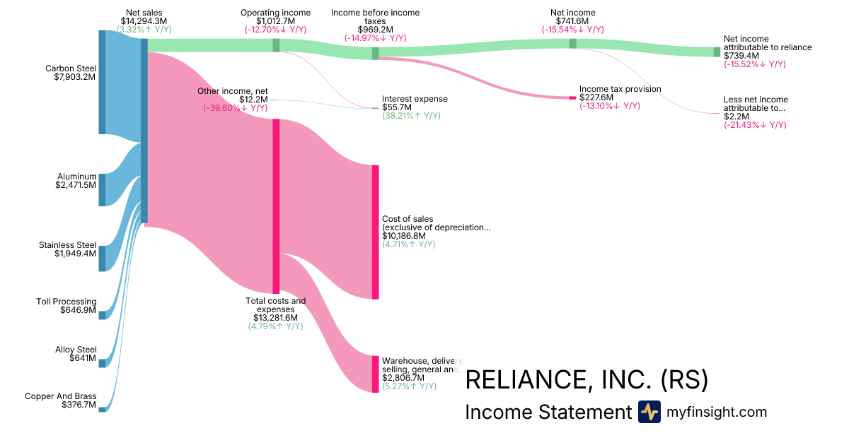 For the year ending 2025-12-31, RS made $14,294.3M in revenue. $739.4M in net income. Net profit margin of 5.17%.