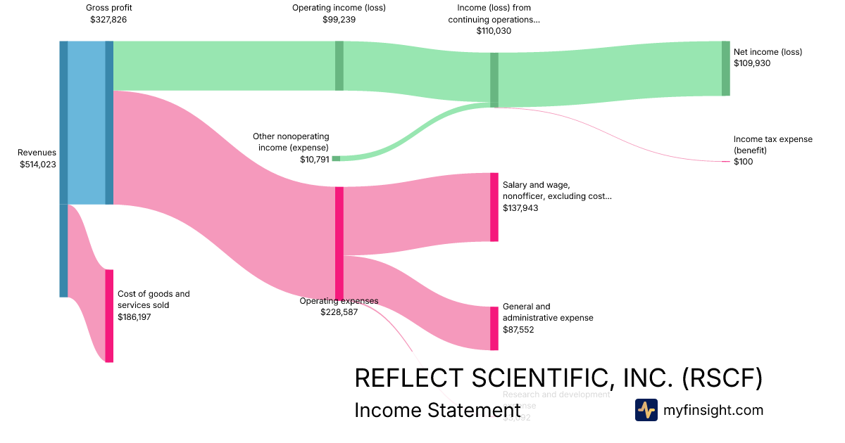 For the quarter ending 2024-09-30, RSCF made $514,023 in revenue. $109,930 in net income. Net profit margin of 21.39%.