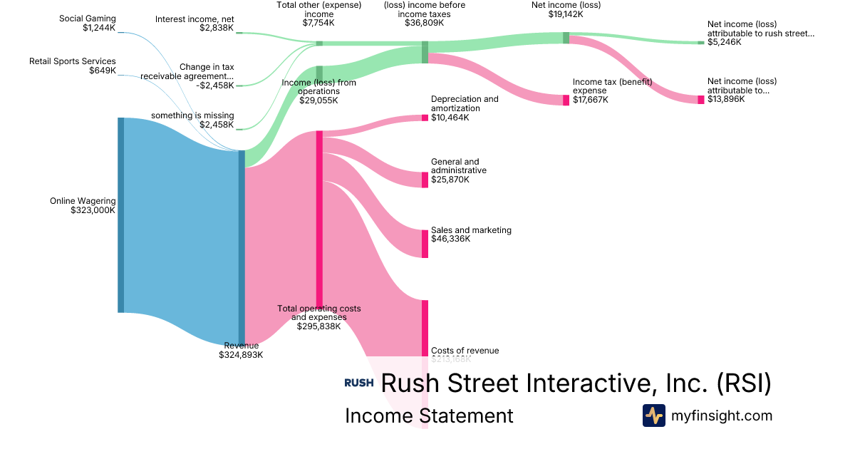 For the year ending 2025-12-31, RSI made $1,134,428K in revenue. $33,308K in net income. Net profit margin of 2.94%.