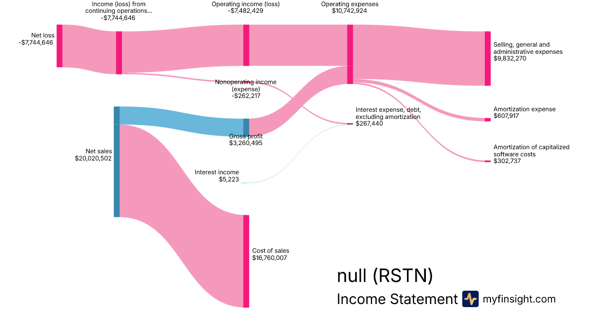 For the quarter ending 2024-06-30, RSTN made $20,020,502 in revenue. -$7,744,646 in net income. Net profit margin of -38.68%.