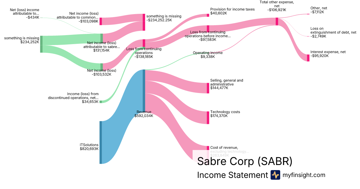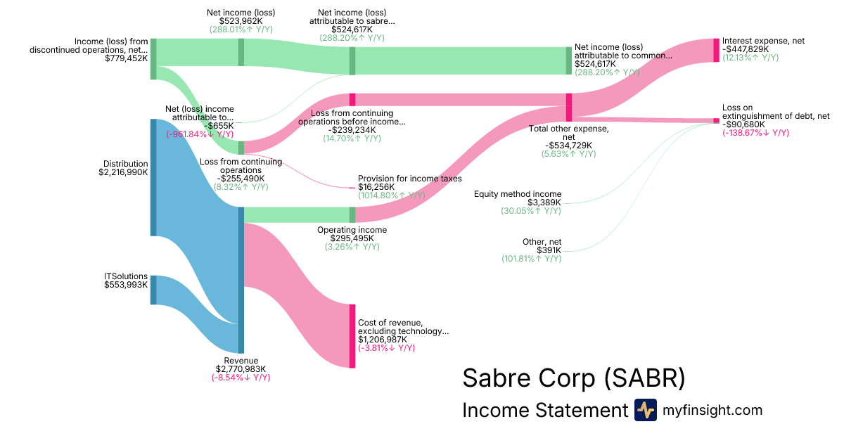 For the year ending 2025-12-31, SABR made $2,770,983K in revenue. $524,617K in net income. Net profit margin of 18.93%.