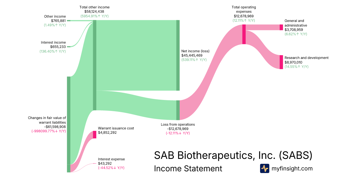 For the quarter ending 2025-09-30, SABS made -$47,498,825 in revenue. $45,445,469 in net income. Net profit margin of -95.68%.
