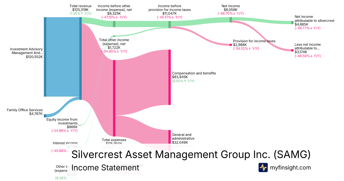 For the year ending 2025-12-31, SAMG made $125,319K in revenue. $4,885K in net income. Net profit margin of 3.90%.