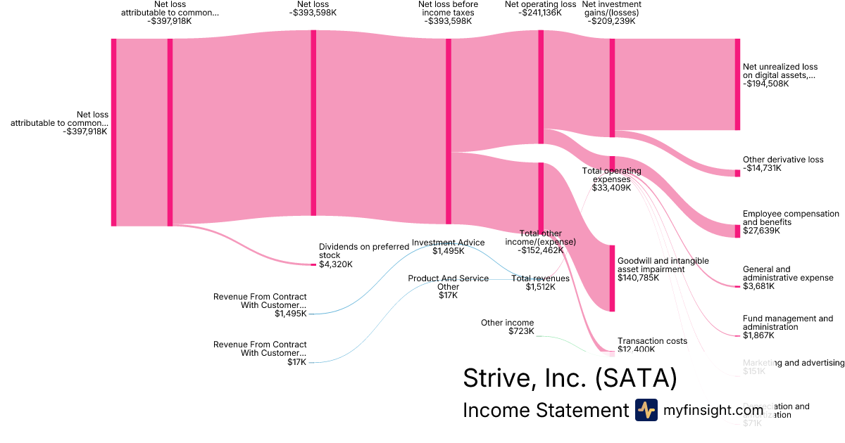 For the year ending 2025-12-31, SATA made $1,512K in revenue. -$397,918K in net income. Net profit margin of -26317.33%.