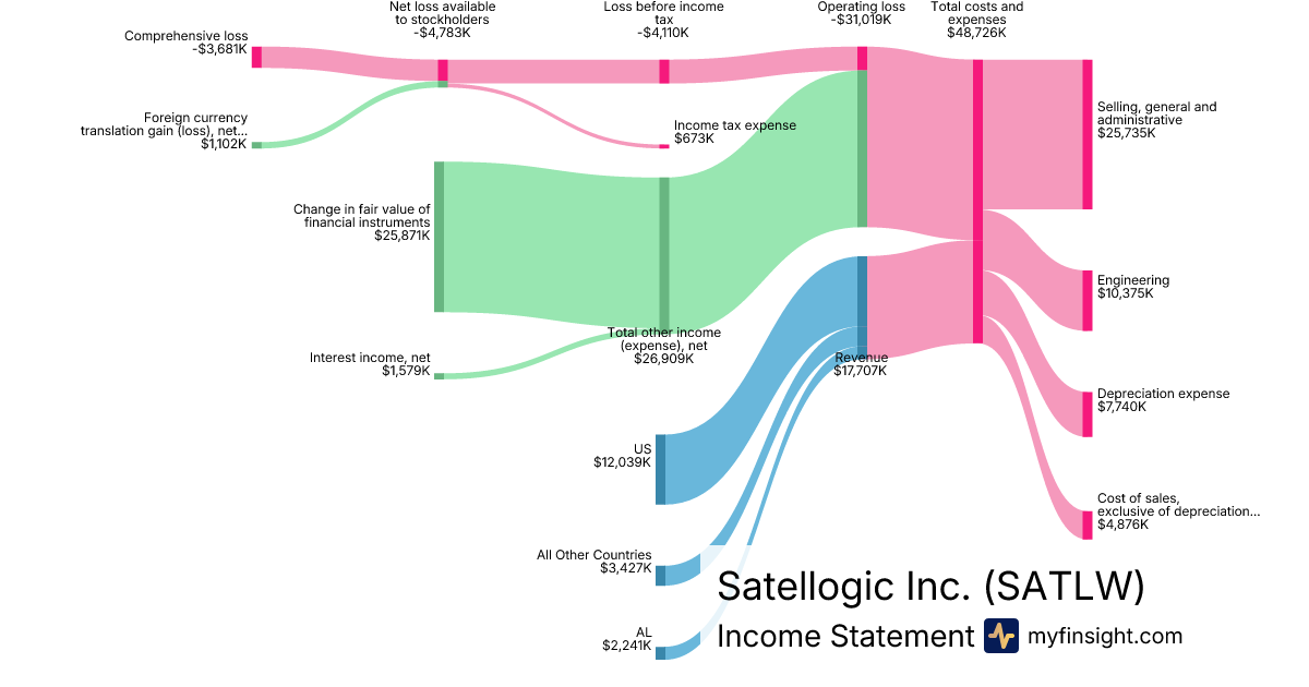 For the year ending 2025-12-31, SATLW made $17,707K in revenue. -$3,681K in net income. Net profit margin of -20.79%.
