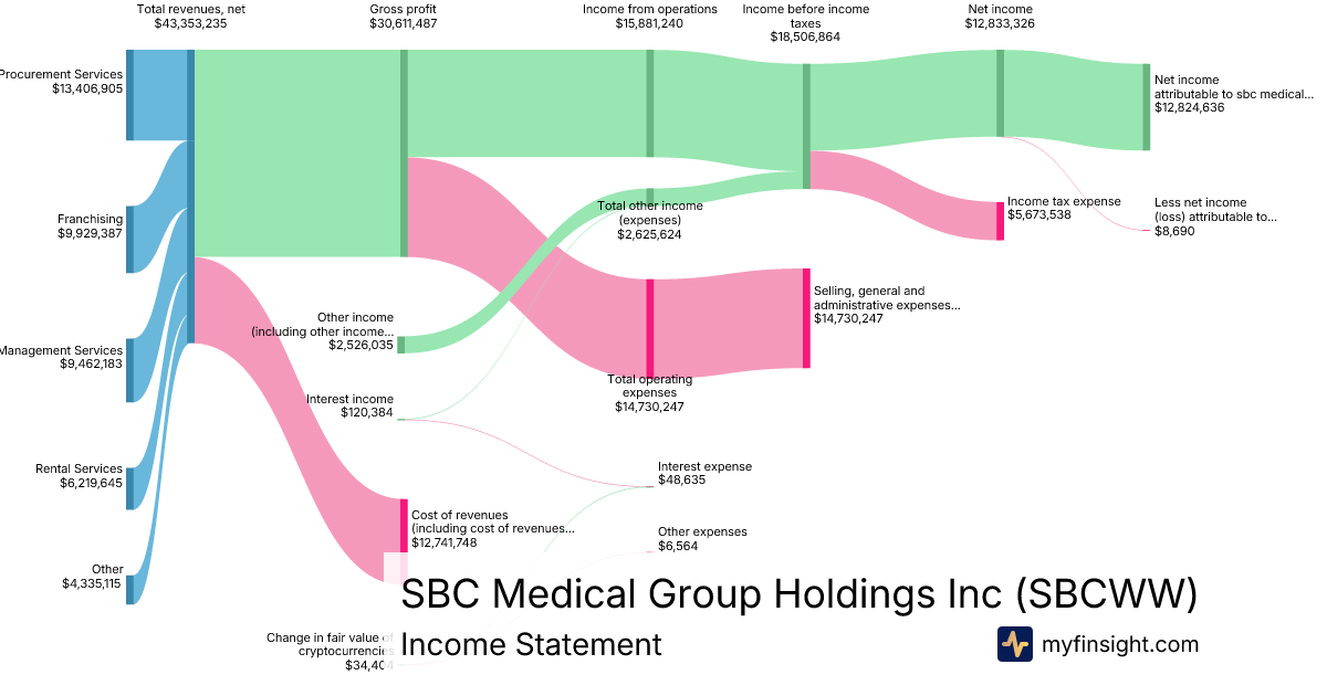 For the quarter ending 2025-09-30, SBCWW made $43,353,235 in revenue. $12,824,636 in net income. Net profit margin of 29.58%.