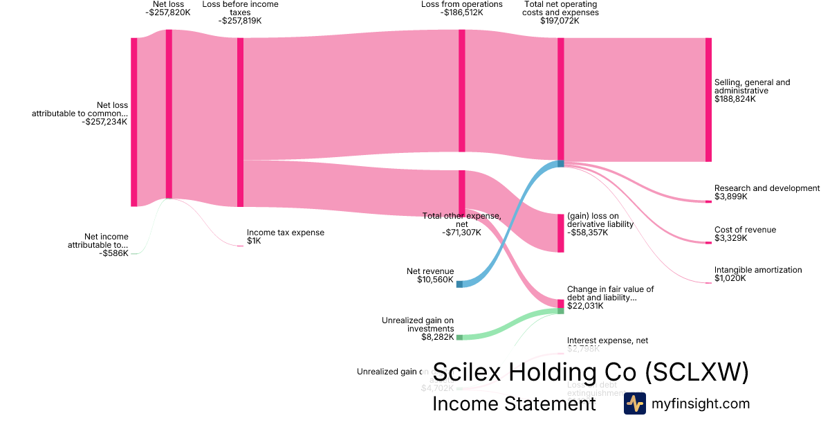 For the quarter ending 2025-09-30, SCLXW made $10,560K in revenue. -$257,234K in net income. Net profit margin of -2435.93%.