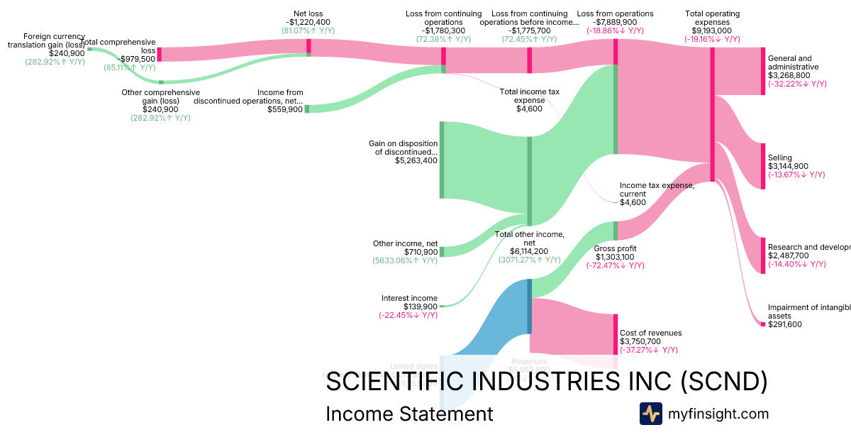 For the year ending 2025-12-31, SCND made $5,053,800 in revenue. -$979,500 in net income. Net profit margin of -19.38%.