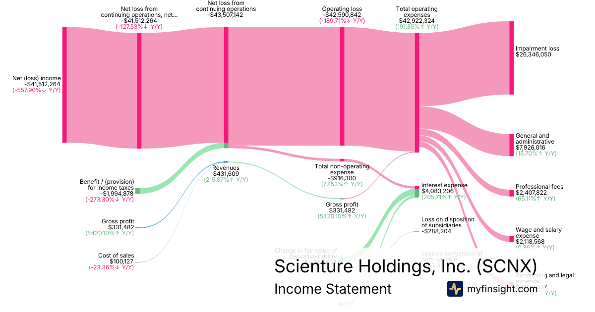 For the year ending 2025-12-31, SCNX made $431,609 in revenue. -$41,512,264 in net income. Net profit margin of -9618.03%.