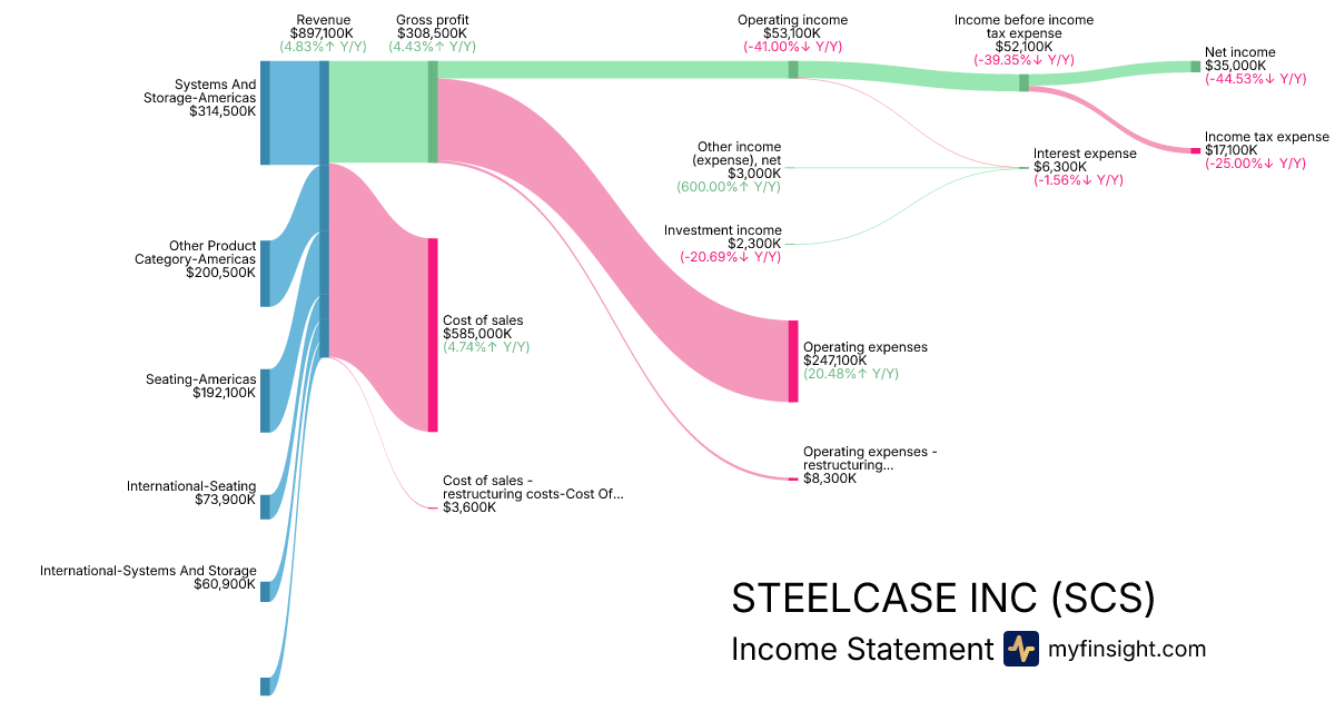For the quarter ending 2025-08-29, SCS made $897,100K in revenue. $35,000K in net income. Net profit margin of 3.90%.