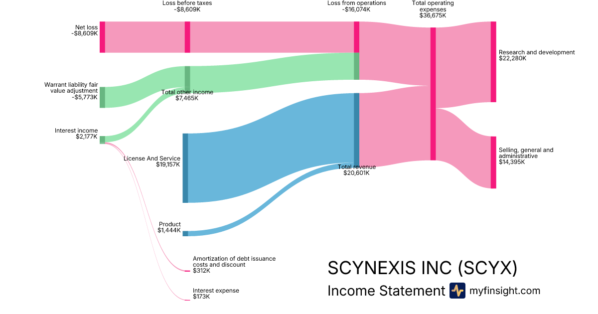 For the year ending 2025-12-31, SCYX made $20,601K in revenue. -$8,609K in net income. Net profit margin of -41.79%.