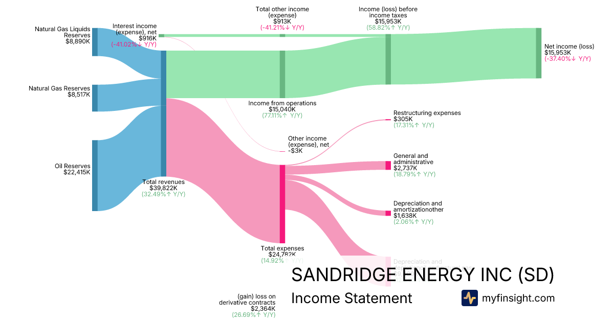 For the quarter ending 2025-09-30, SD made $39,822K in revenue. $15,953K in net income. Net profit margin of 40.06%.
