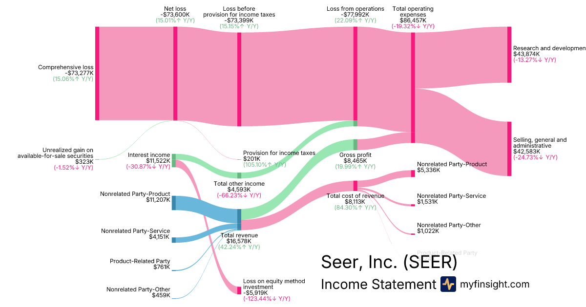 For the year ending 2025-12-31, SEER made $16,578K in revenue. -$73,277K in net income. Net profit margin of -442.01%.