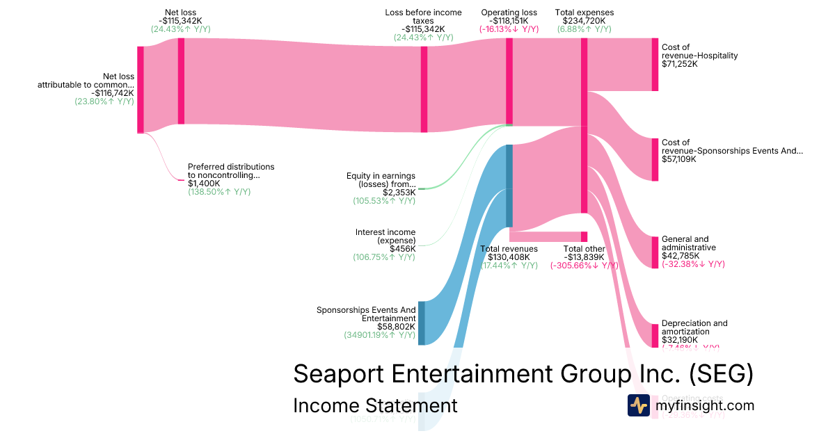 For the year ending 2025-12-31, SEG made $130,408K in revenue. -$116,742K in net income. Net profit margin of -89.52%.
