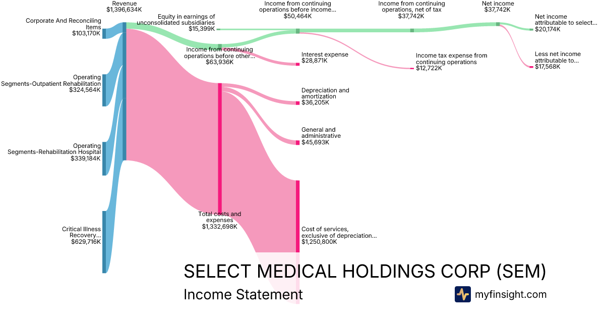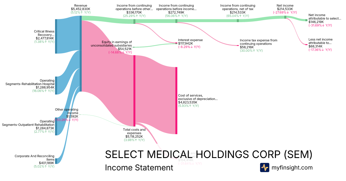 For the year ending 2025-12-31, SEM made $5,452,830K in revenue. $146,219K in net income. Net profit margin of 2.68%.