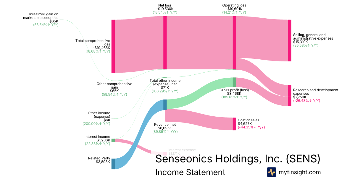 For the quarter ending 2025-09-30, SENS made $8,095,000 in revenue. -$19,465,000 in net income. Net profit margin of -240.46%.