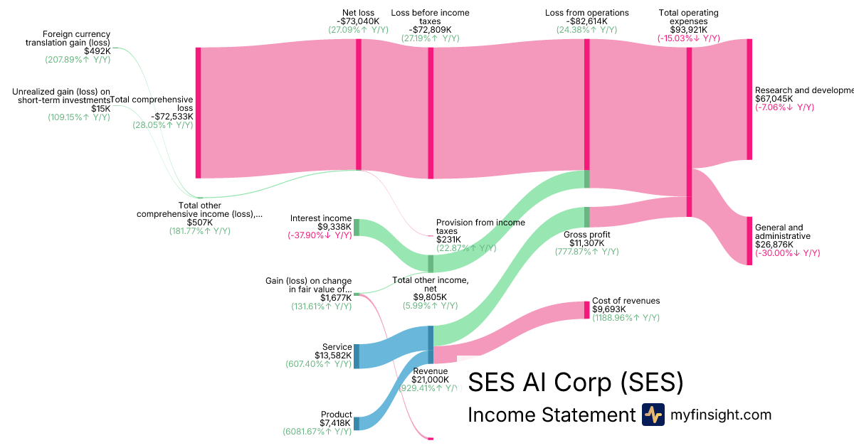 For the year ending 2025-12-31, SES made $21,000K in revenue. -$72,533K in net income. Net profit margin of -345.40%.