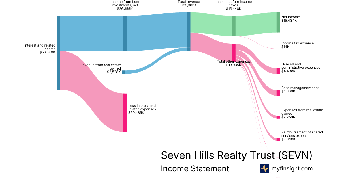 For the year ending 2025-12-31, SEVN made $29,383K in revenue. $15,434K in net income. Net profit margin of 52.53%.