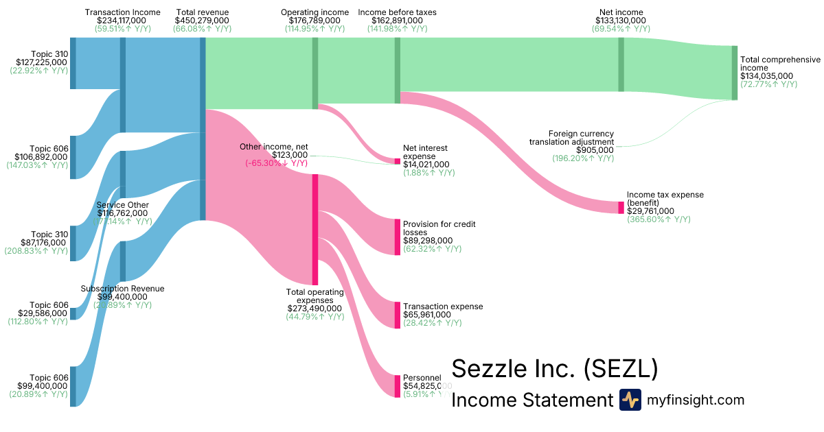 For the year ending 2025-12-31, SEZL made $450,279,000 in revenue. $134,035,000 in net income. Net profit margin of 29.77%.