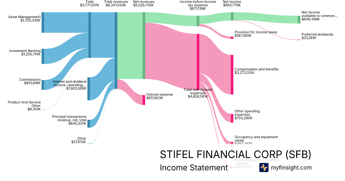 For the year ending 2025-12-31, SFB made $6,347,533K in revenue. $646,498K in net income. Net profit margin of 10.19%.