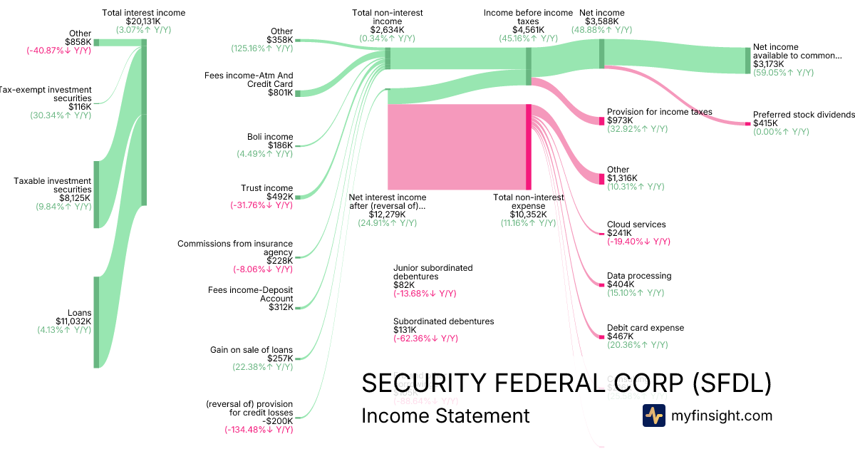 For the quarter ending 2025-09-30, SFDL made $40,969K in revenue. $3,173K in net income. Net profit margin of 7.74%.