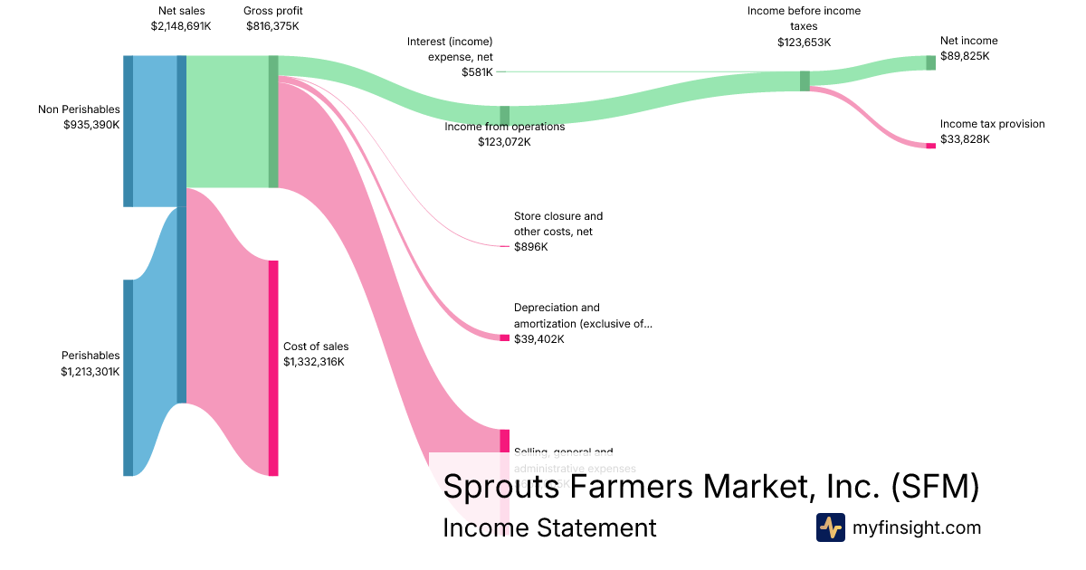 For the year ending 2025-12-28, SFM made $8,806,159K in revenue. $523,670K in net income. Net profit margin of 5.95%.