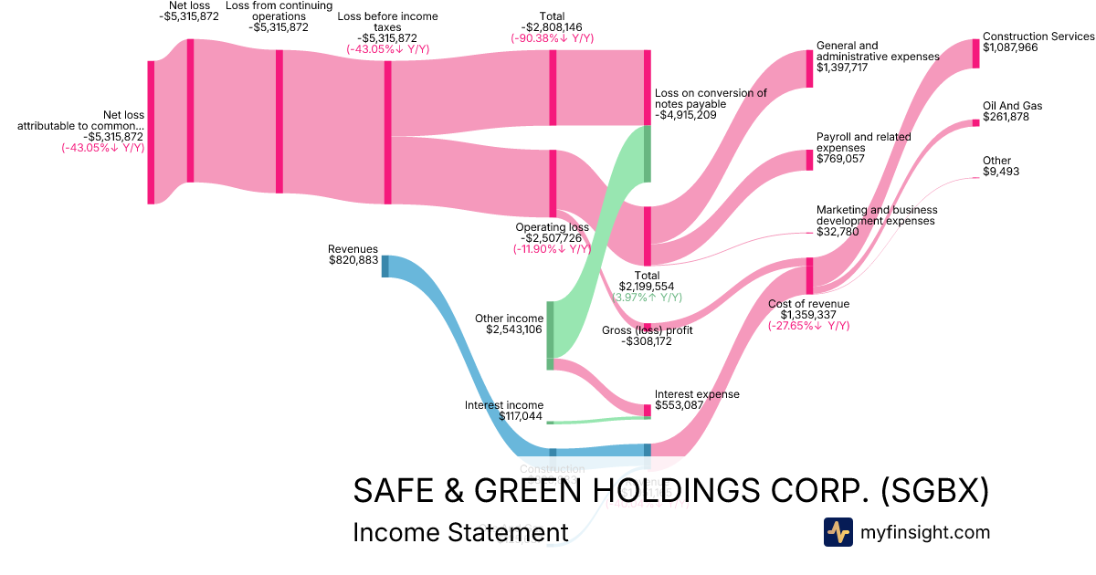 For the quarter ending 2025-09-30, SGBX made $1,051,165 in revenue. -$5,315,872 in net income. Net profit margin of -505.71%.