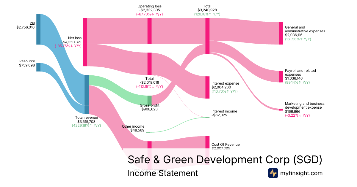 For the quarter ending 2025-09-30, SGD made $3,515,708 in revenue. -$4,350,321 in net income. Net profit margin of -123.74%.