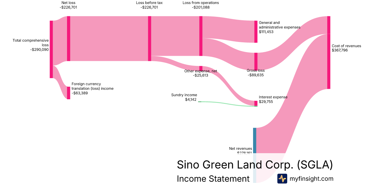 For the quarter ending 2025-12-31, SGLA made $278,161 in revenue. -$290,090 in net income. Net profit margin of -104.29%.
