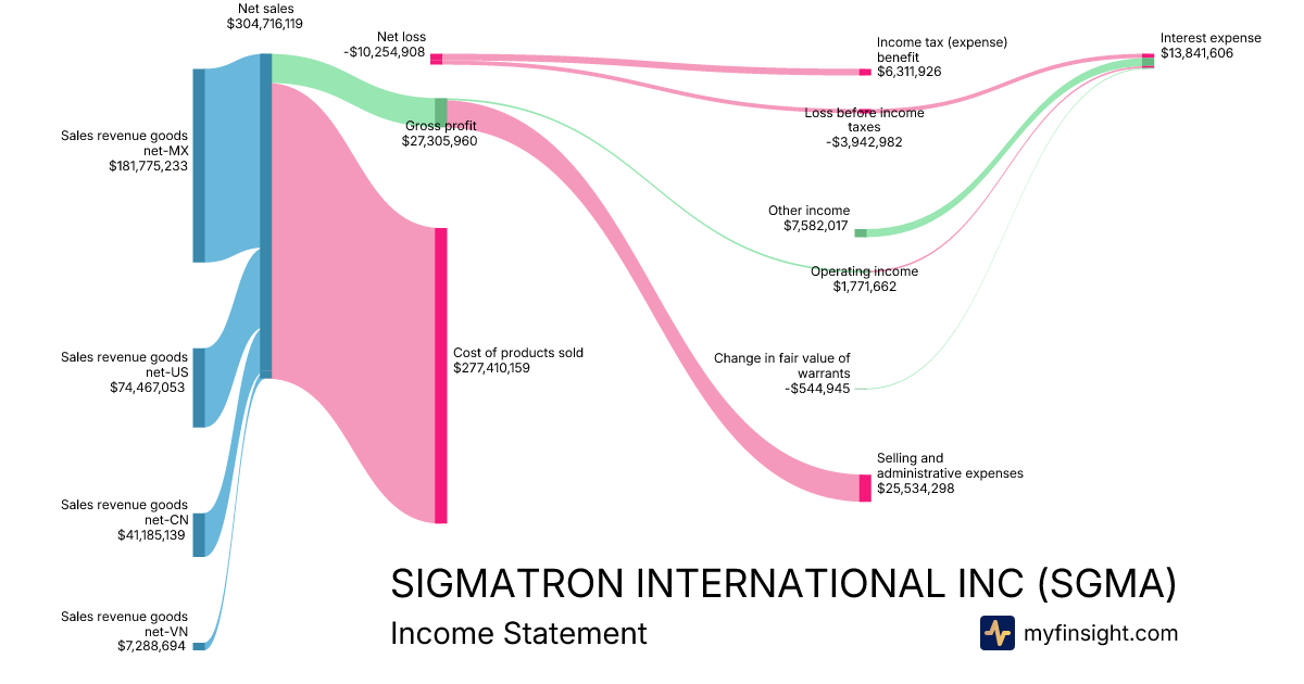 For the year ending 2025-04-30, SGMA made $304,716,119 in revenue. -$10,254,908 in net income. Net profit margin of -3.37%.