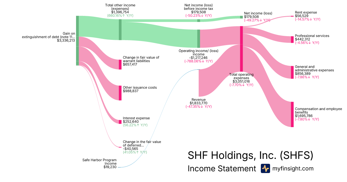 For the quarter ending 2025-09-30, SHFS made $8,220,999 in revenue. $179,508 in net income. Net profit margin of 2.18%.
