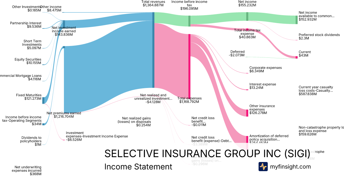 For the year ending 2025-12-31, SIGI made $5,336,928K in revenue. $457,211K in net income. Net profit margin of 8.57%.