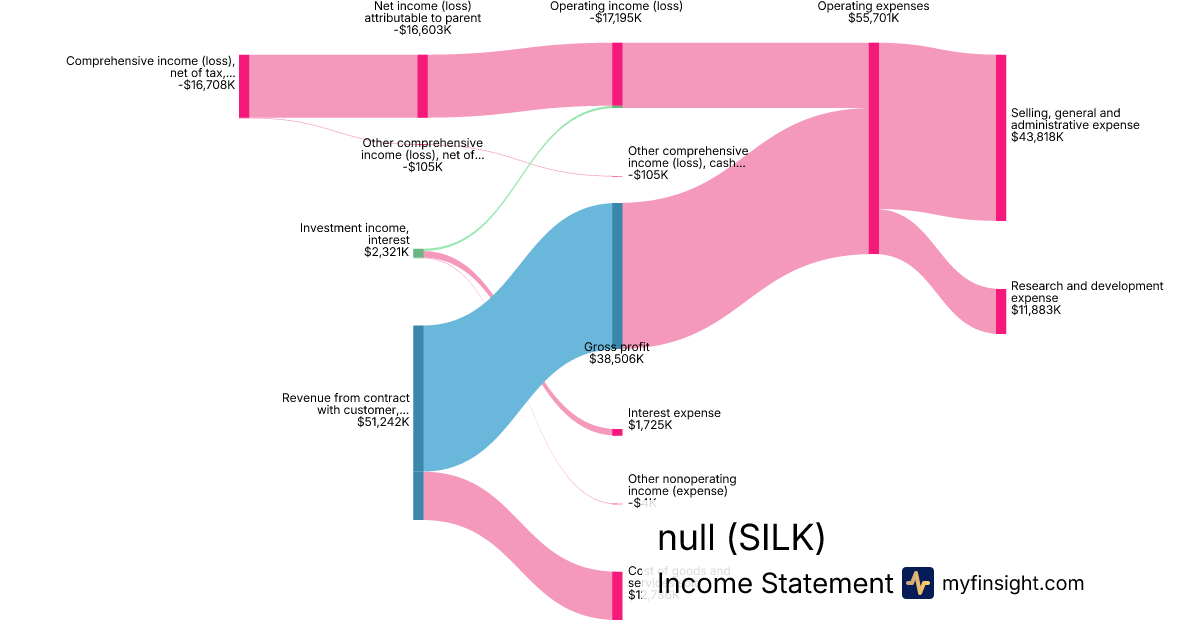 For the quarter ending 2024-06-30, SILK made $51,242K in revenue. -$16,708K in net income. Net profit margin of -32.61%.
