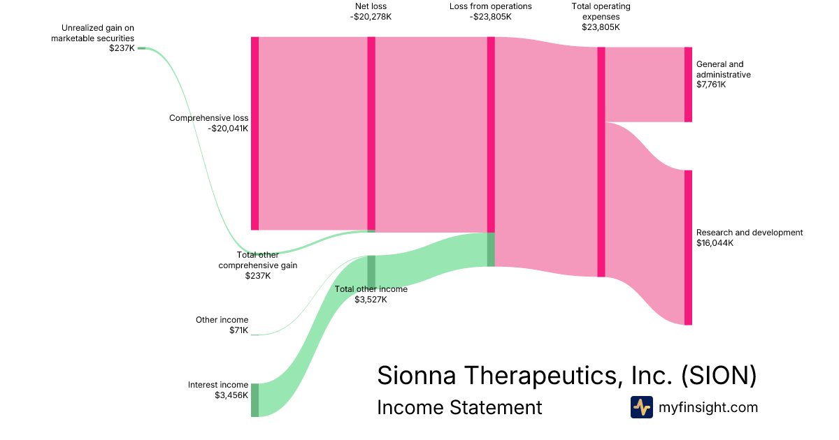 For the quarter ending 2025-09-30, SION made $27,569K in revenue. -$20,041K in net income. Net profit margin of -72.69%.