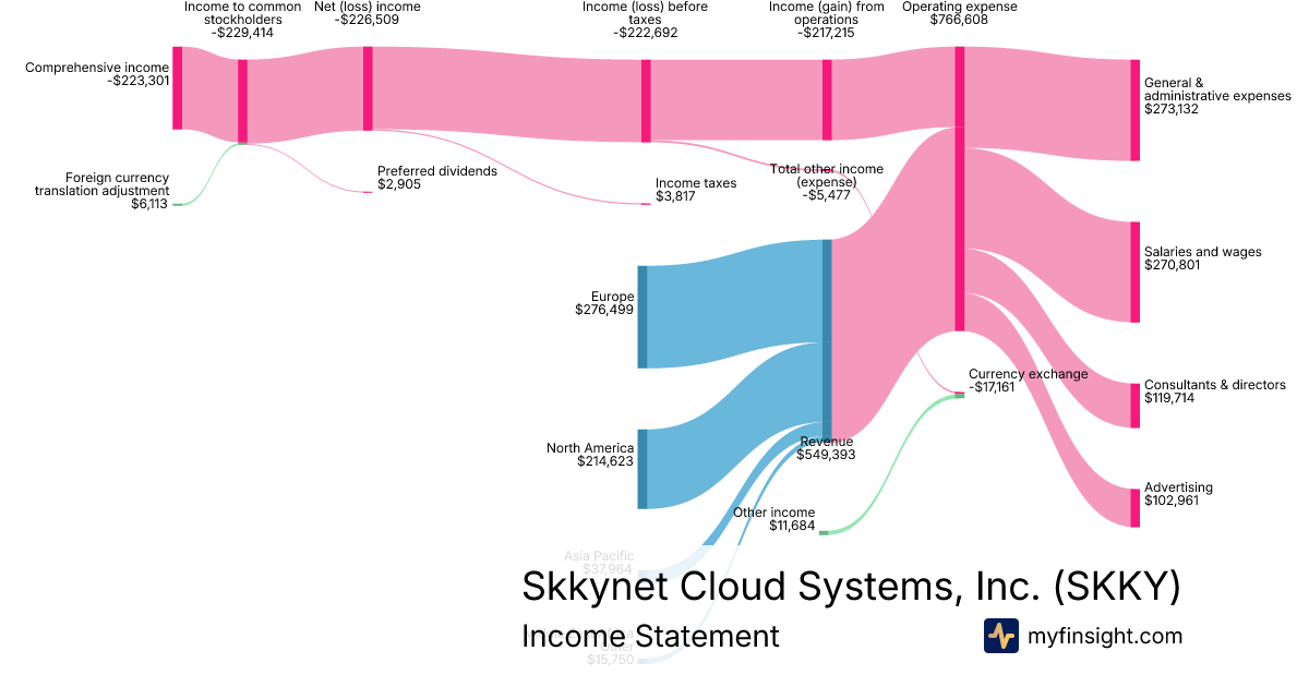 For the quarter ending 2026-01-31, SKKY made $549,393 in revenue. -$223,301 in net income. Net profit margin of -40.65%.