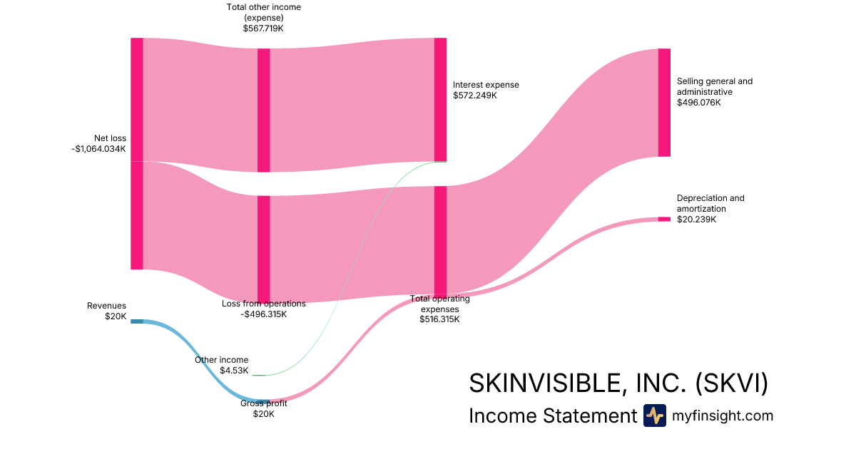 For the year ending 2025-12-31, SKVI made $20K in revenue. -$1,064.034K in net income. Net profit margin of -5320.17%.