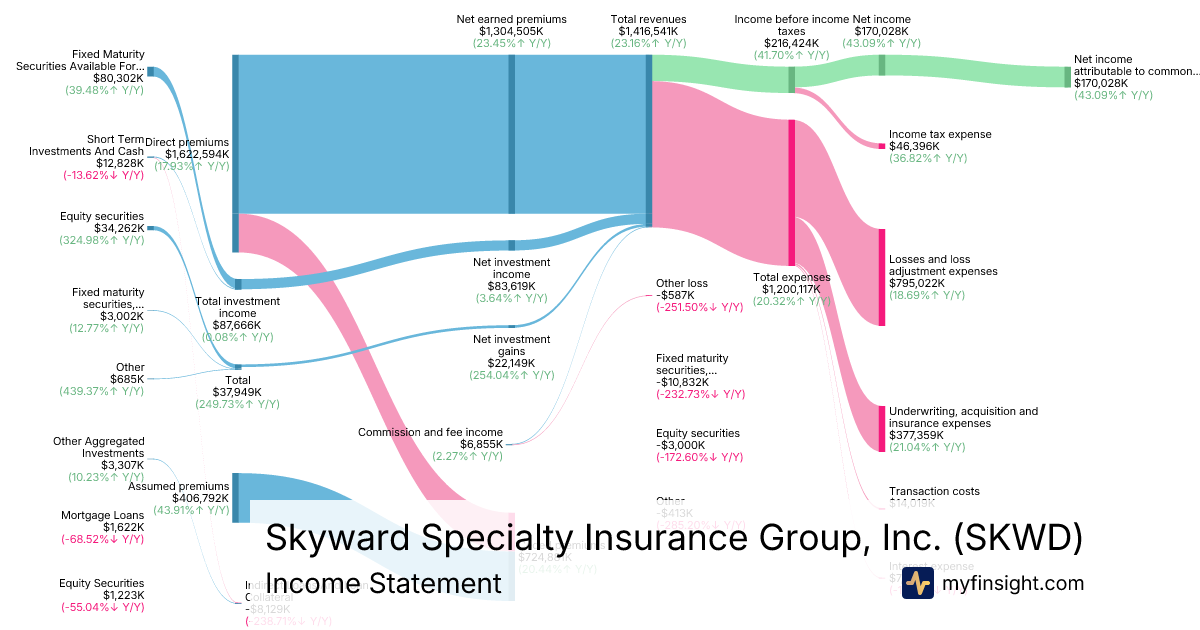 For the year ending 2025-12-31, SKWD made $1,416,541K in revenue. $170,028K in net income. Net profit margin of 12.00%.