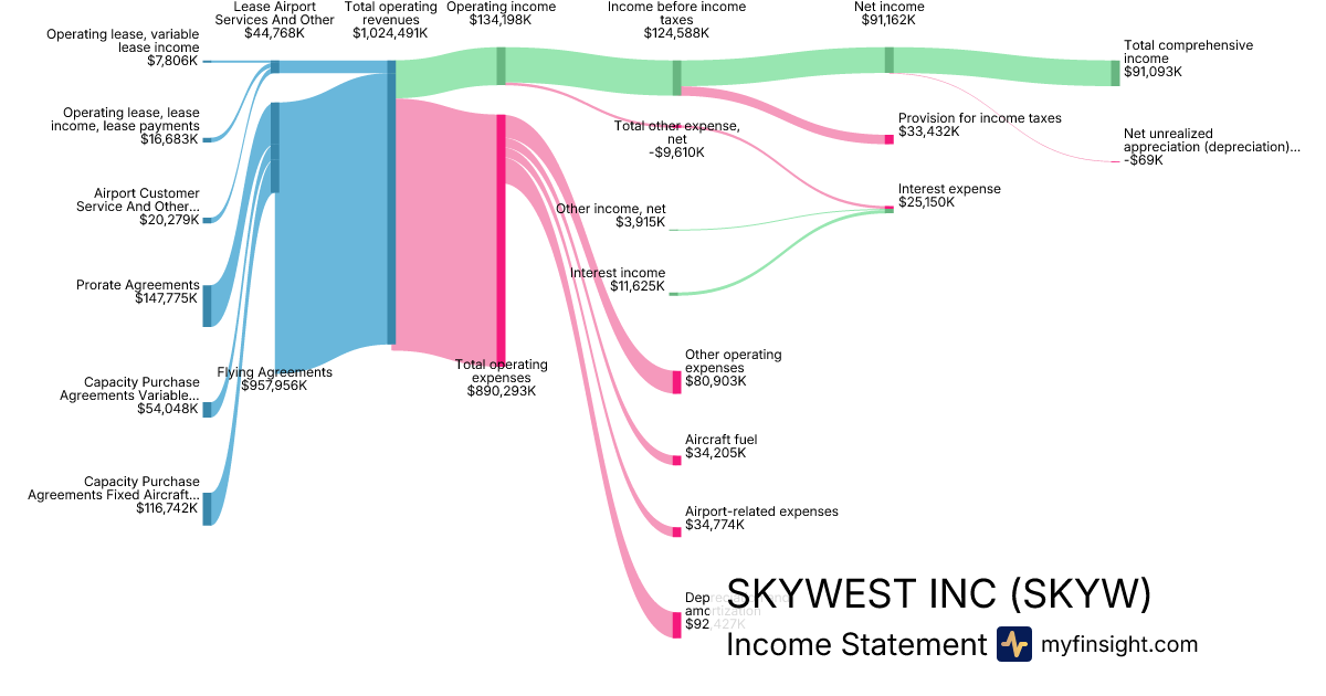 For the year ending 2025-12-31, SKYW made $4,058,202K in revenue. $428,444K in net income. Net profit margin of 10.56%.