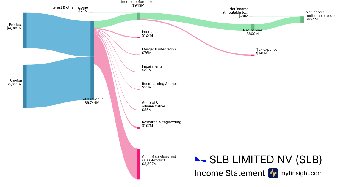 For the year ending 2025-12-31, SLB made $35,708M in revenue. $3,374M in net income. Net profit margin of 9.45%.