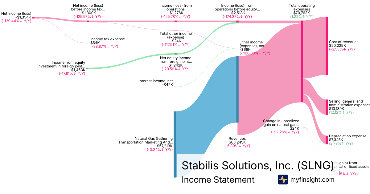 For the year ending 2025-12-31, SLNG made $68,245K in revenue. -$1,354K in net income. Net profit margin of -1.98%.