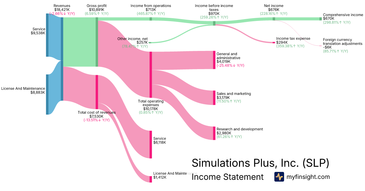 For the quarter ending 2025-11-30, SLP made $18,421K in revenue. $670K in net income. Net profit margin of 3.64%.