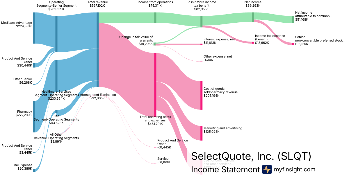 For the quarter ending 2025-12-31, SLQT made $537,102K in revenue. $51,168K in net income. Net profit margin of 9.53%.