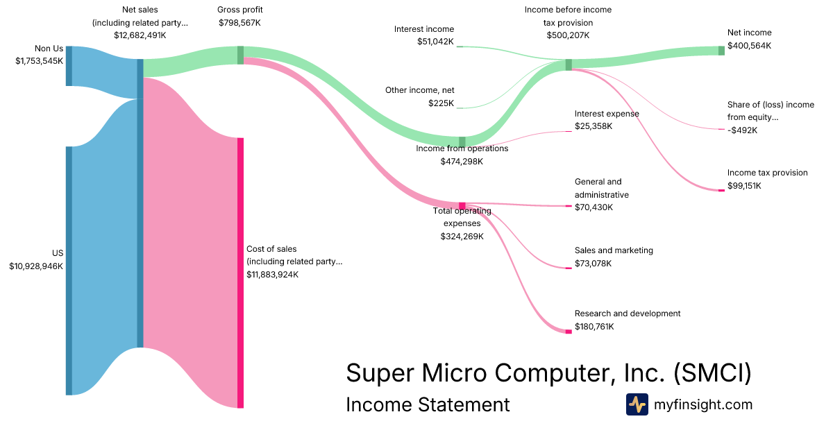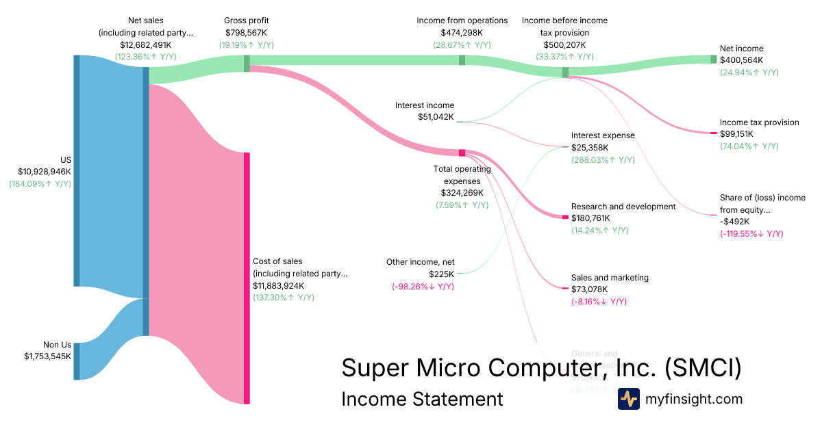 For the quarter ending 2025-12-31, SMCI made $12,682,491K in revenue. $400,564K in net income. Net profit margin of 3.16%.